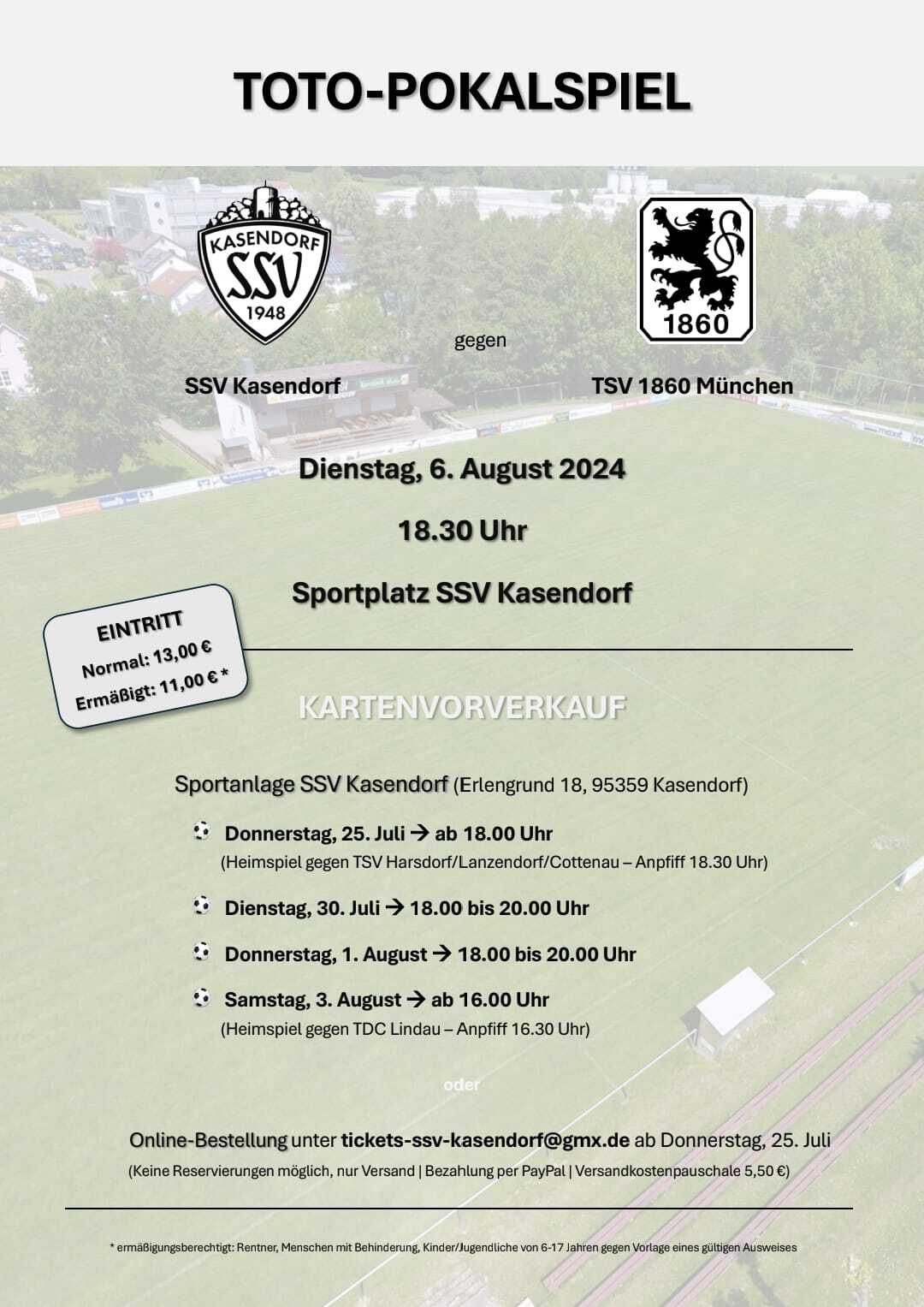 Ticketinfos für den Toto-Pokal beim SSV Kasendorf.